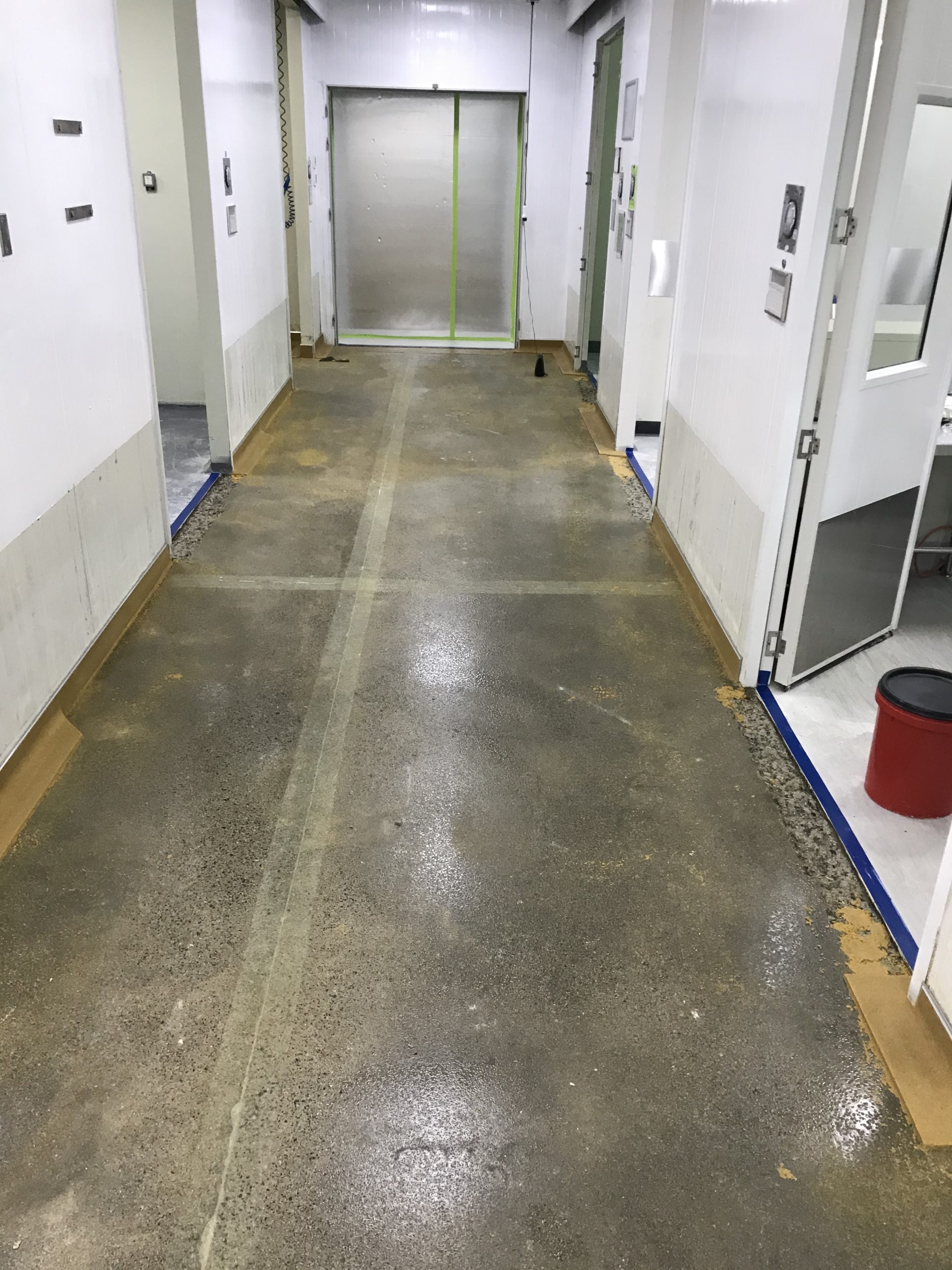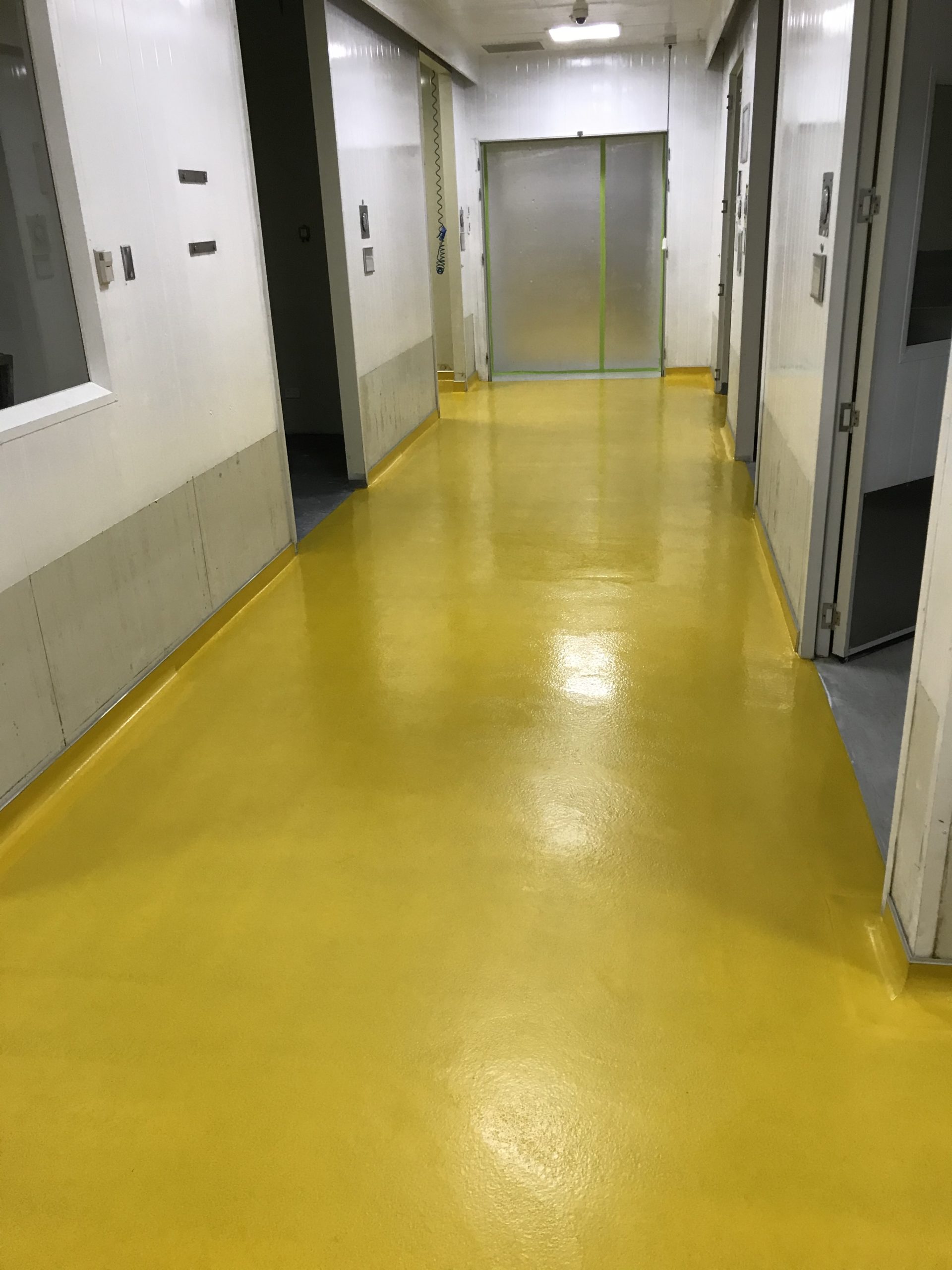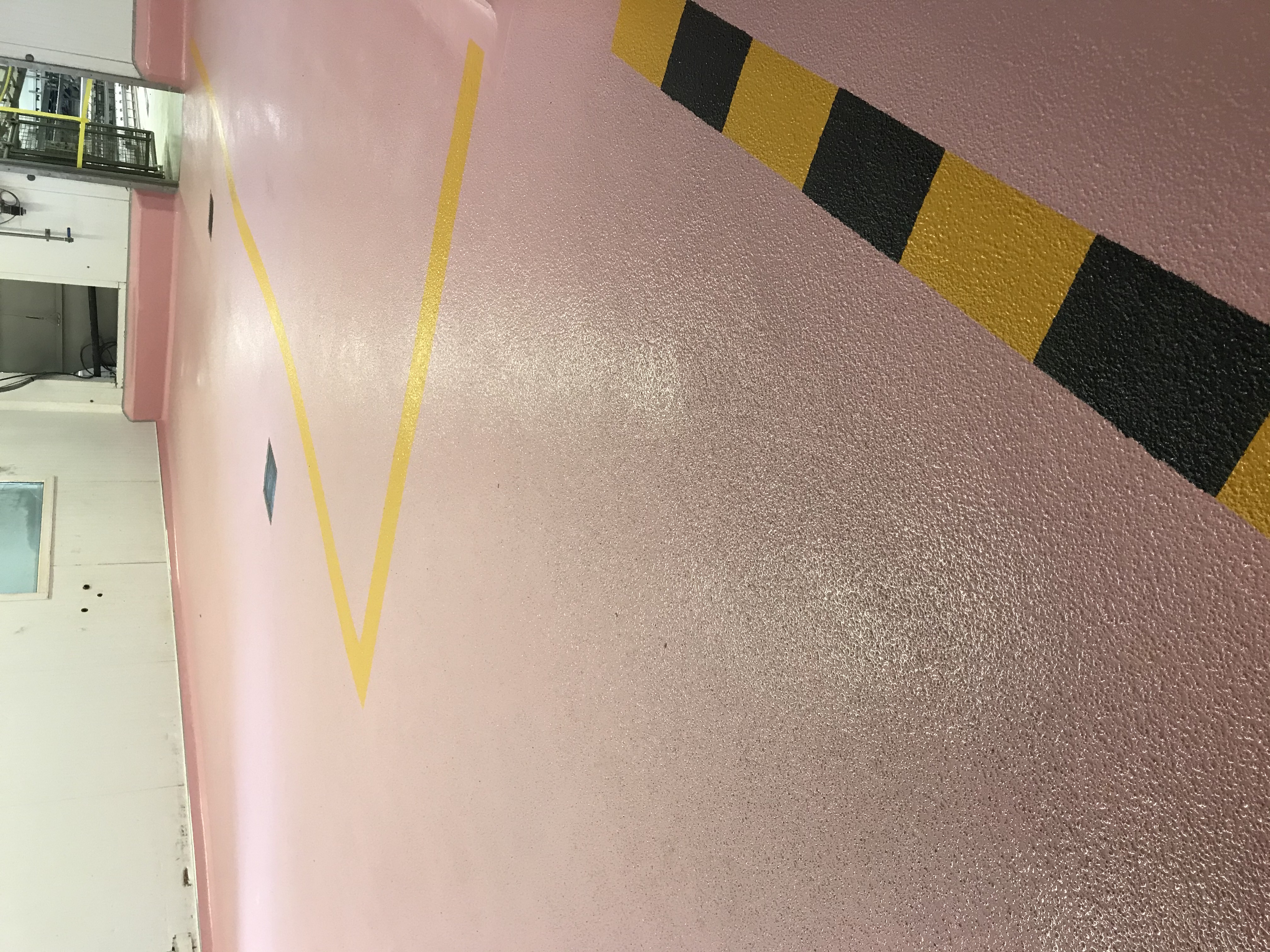 Our client in Fiji had existing sheet vinyl in these high hygiene production areas. We removed the vinyl, prepared the substrate and installed Allnex Supascreed epoxy floor topping with coving to all upstands, and finished slip resistant in Safety Yellow.
